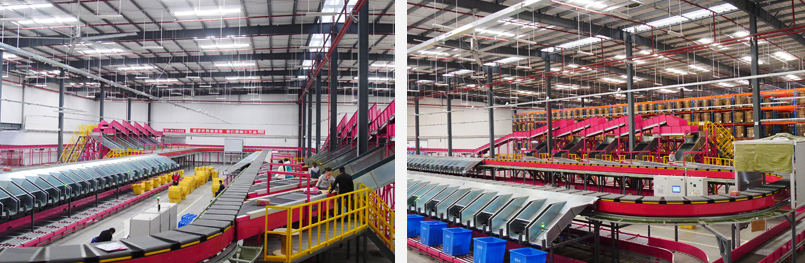 唯品會交叉帶智能分揀系統(tǒng)占地面積1000平米,分揀效率達每小時2萬件以上。由包裹輸送線、疊式皮帶分配系統(tǒng)、供包臺、交叉帶智能分揀主線、分揀格口、自動出倉系統(tǒng)等部分組成,是集機械、電氣、軟件為一體的先進分揀系統(tǒng)。交叉帶智能分揀系統(tǒng)占地面積小、分揀效率高、人工投入少,是大型生產(chǎn)倉配中心、電商公司、快遞公司等提升行業(yè)競爭力、減少人工成本、提高倉配效率的選擇。