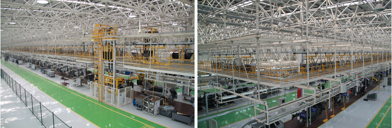 The workshop production line passes the maximum body-in-white weight: 500Kg/set.