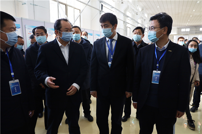 會前,東杰智能總經理王永紅陪同王一新副省長、中北大學黨委書記沈興全等領導,一同參觀了中北大學科技成果展。